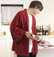 フロントは前開きで、ひざ下丈の使いやすいサイズ。ショート丈なので、ズボンからのぞく心配もありません。
